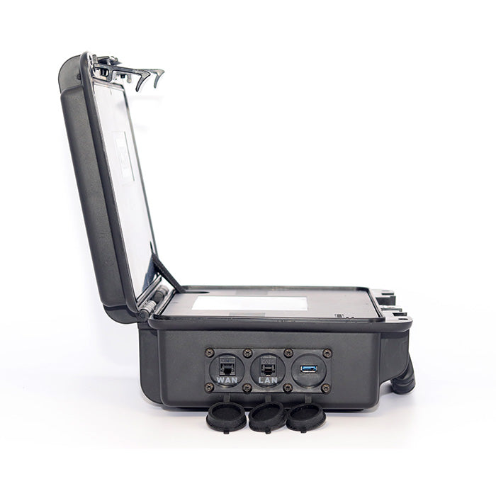 Port Access  Weather-resilient exterior port Access to USB data, USB Charging, WAN/LAN, and power button.